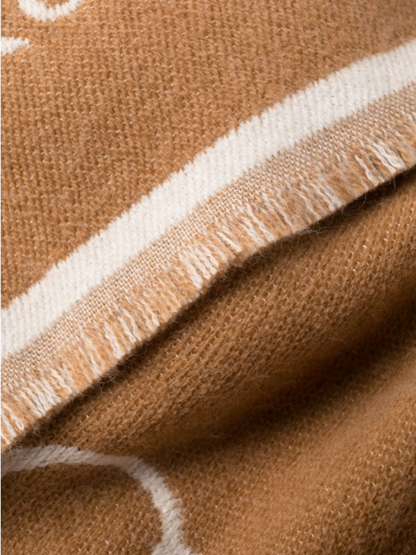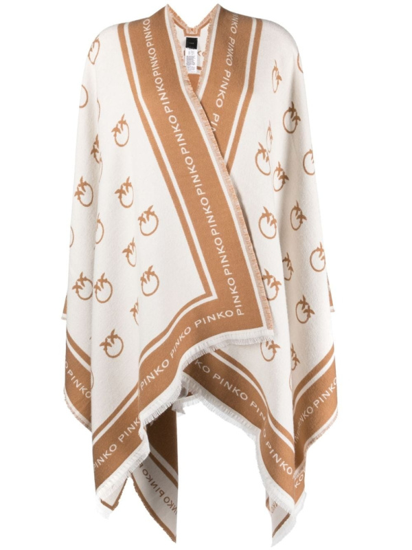 PINKO bijelo-smeđi pleteni šal s printom logotipa
