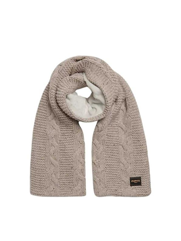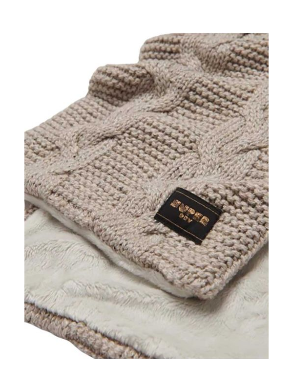 Superdry pleteni ženski bež šal sa toplom postavom od eko kože