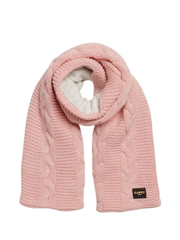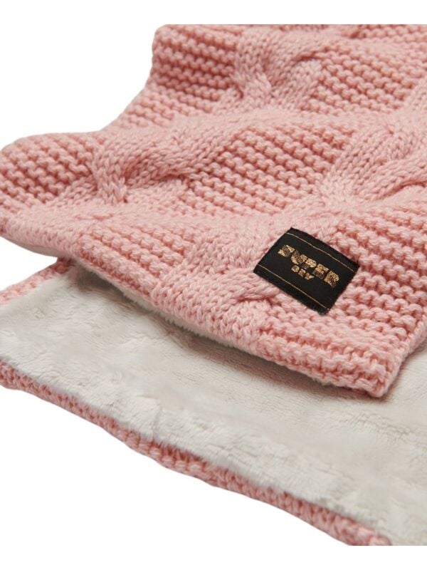 Superdry pleteni ženski rozi šal sa toplom postavom od eko kože