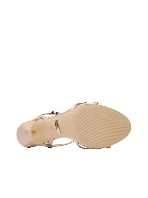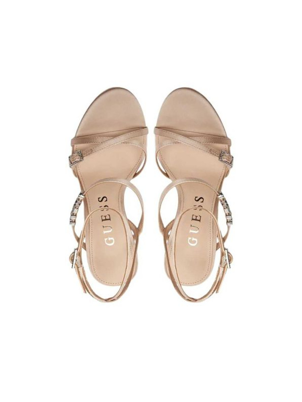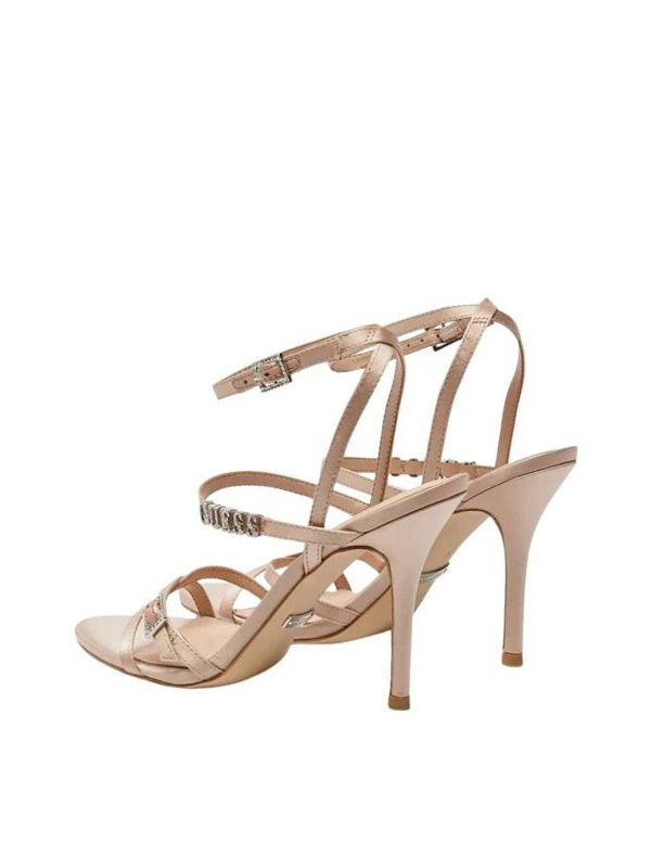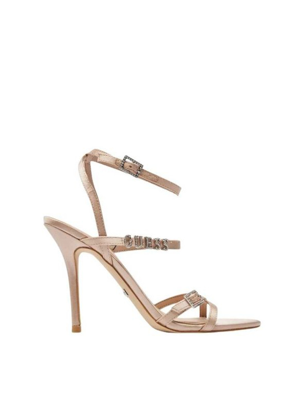 Guess Edelia bež ženske sandale sa tankim kaišićima i metalnim slovnim logom
