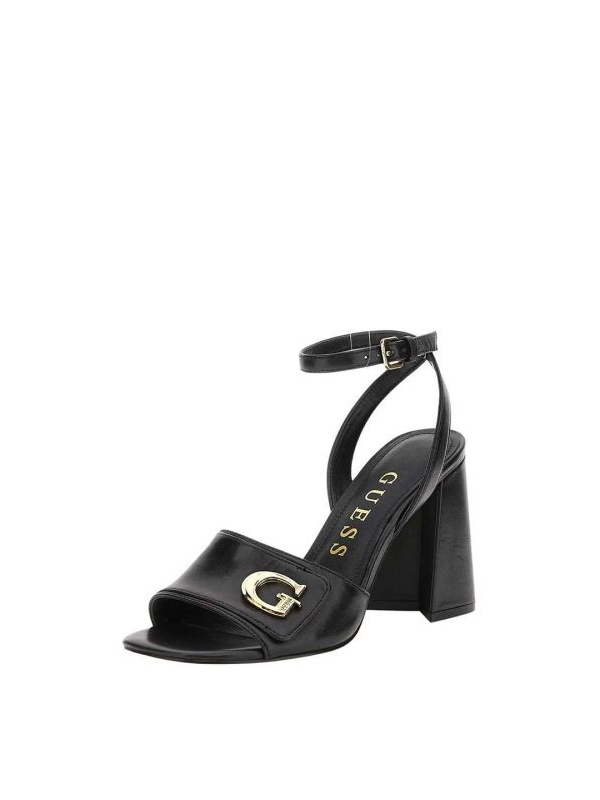 Ženske crne GUESS 'Kernara' kožne sandale sa tankim kaišem oko zgloba