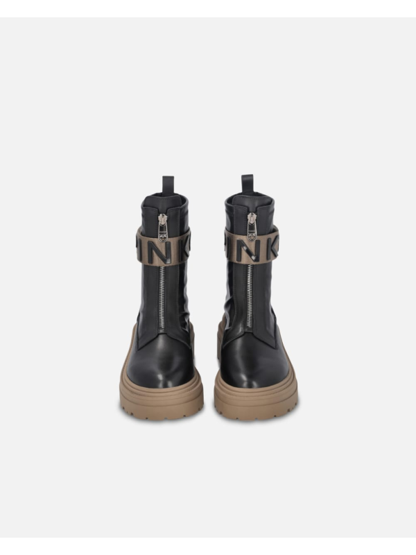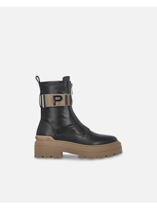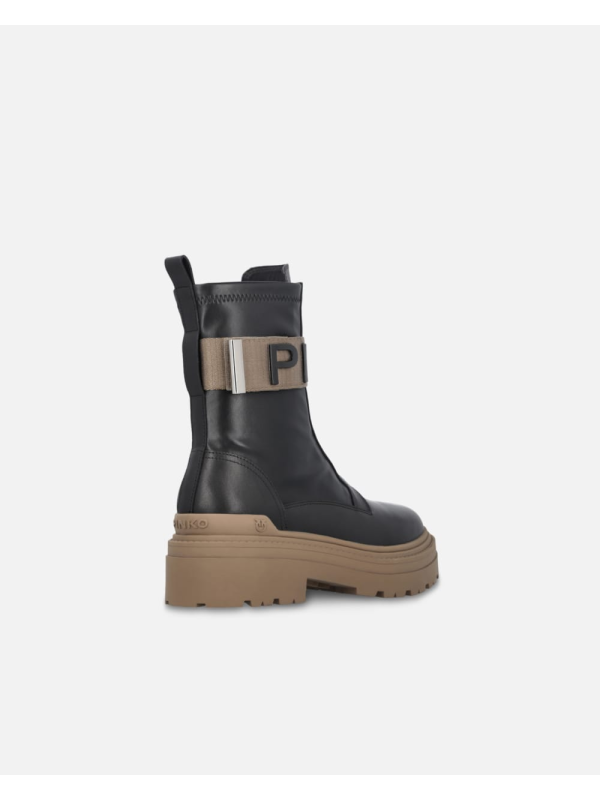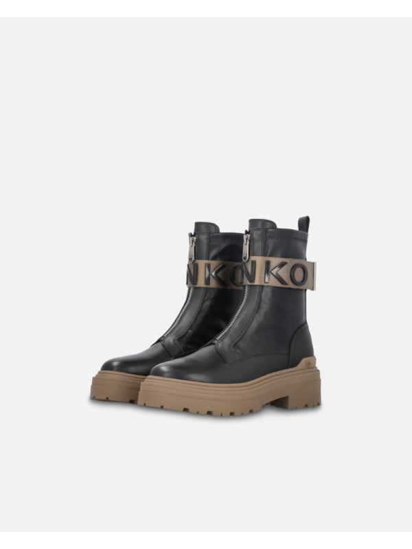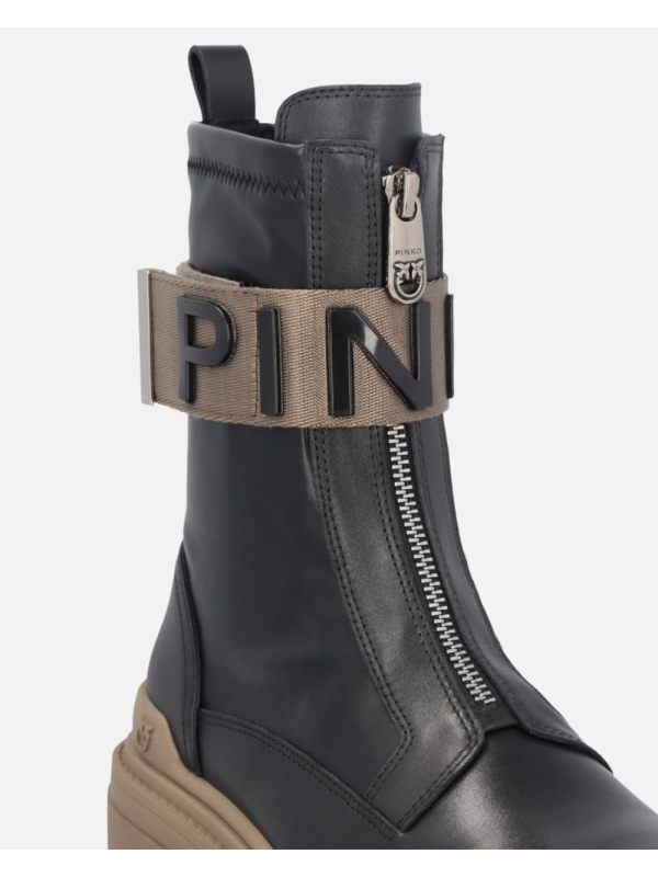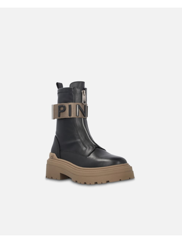 Ženske crne Pinko 'borbene' čizme s prednjom brendiranom vrpcom