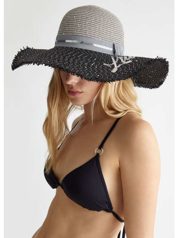 Ženski crni LIU JO šešir od rafije