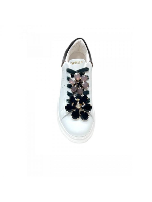 Kožne tenisice s kontrastnim crnim umetcima i skidivim cvjetnim privjescima na vezicama.