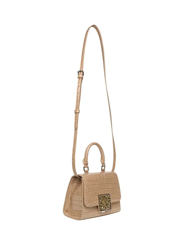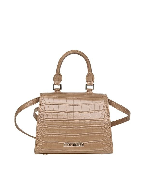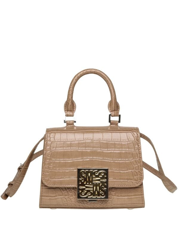 Ženska Steve Madden Bjanae bež kroko torbica na preklop sa monogram kopčom i lancem
