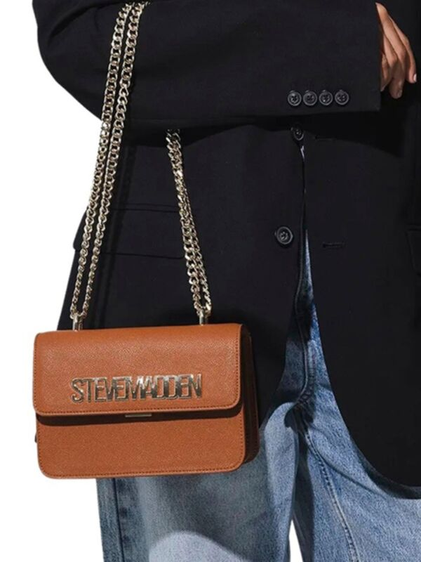 Ženska smeđa Steve Madden torbica na preklop s maxi logo kopčom