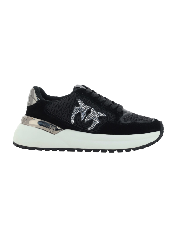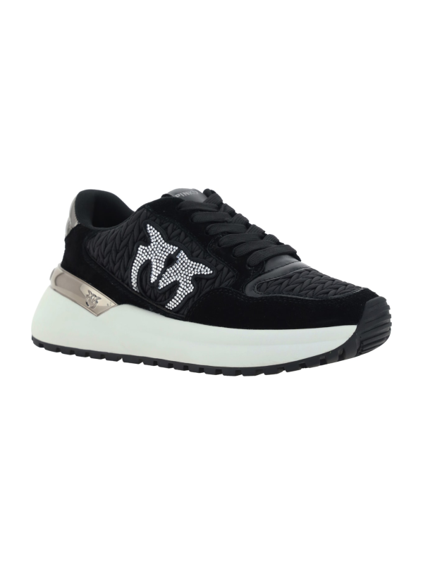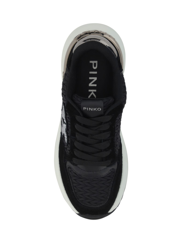 Pinko tenisice Gem 07, okrugli vrh, teksturirani neklizajući potplat s izbočenim dijelovima, prednje kopčanje na vezanje, detalji od antilop kože, kontrastna izvezena etiketa s logotipom na prednjem jezičku, višebojni dizajn panela, legendarni logo zaljubljenih ptica na bočnim stranama.