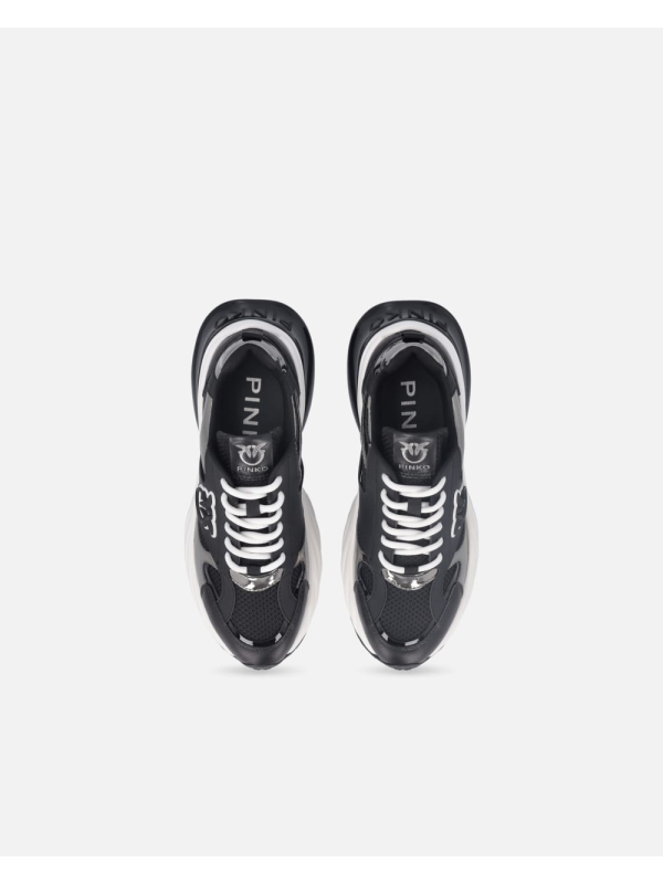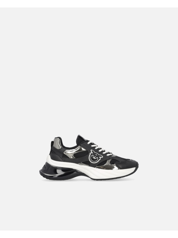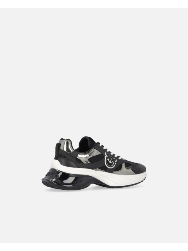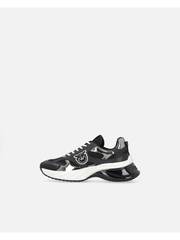 Ženske crne Pinko tenisice s logom i zrcalno sivim detaljem