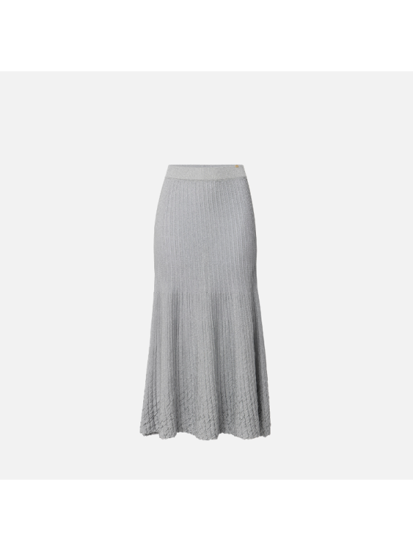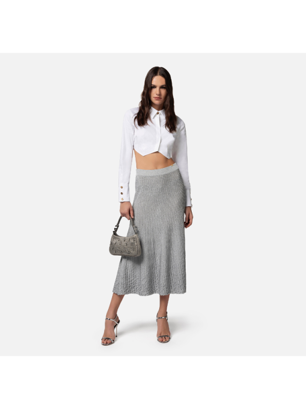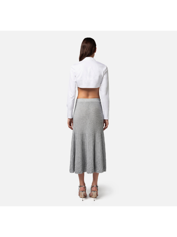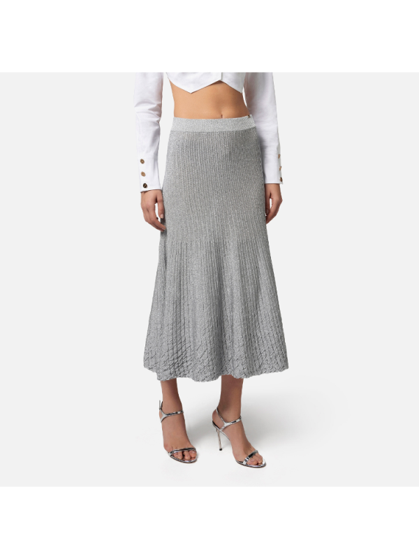 Ženska ELISABETTA FRANCHI metalik rebrasta midi suknja od viskoze koja se širi na dnu simulirajući nabore s elastičnim pojasom.