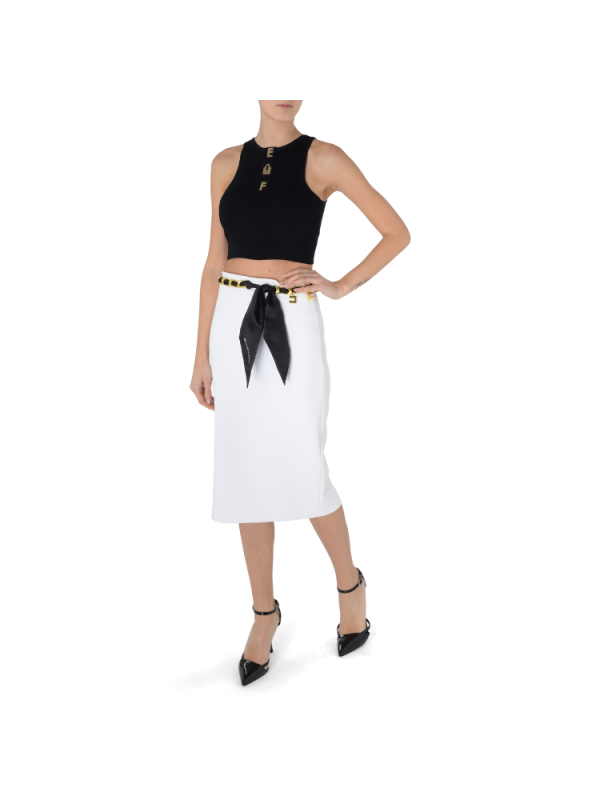Midi suknja Elisabetta Franchi u bijelom rastezljivom krepu.