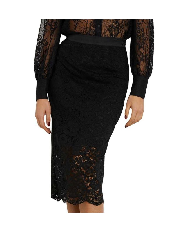 Guess 'Erika' čipkana crna midi suknja sa postavom