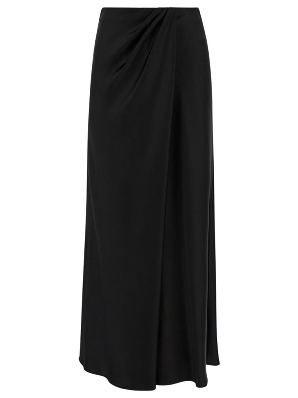 Ženska PINKO duga crna suknja s drapiranim detaljima od satena