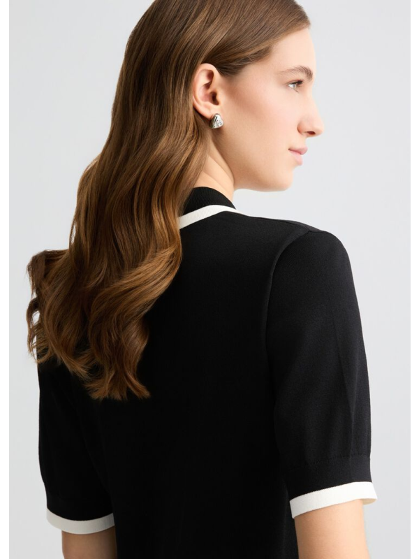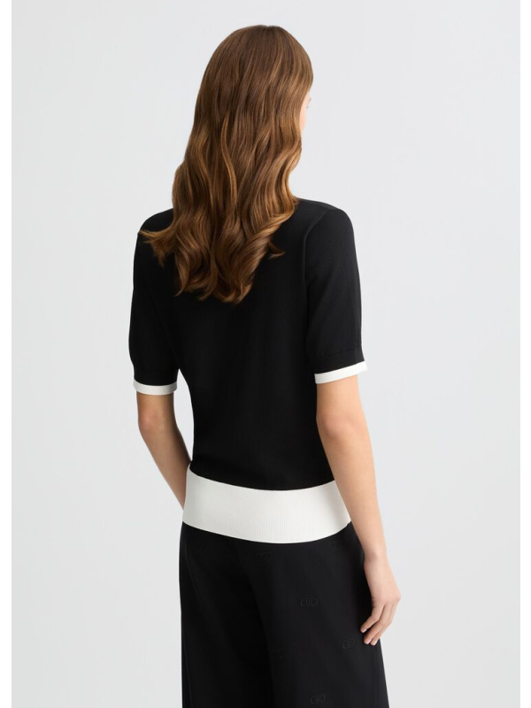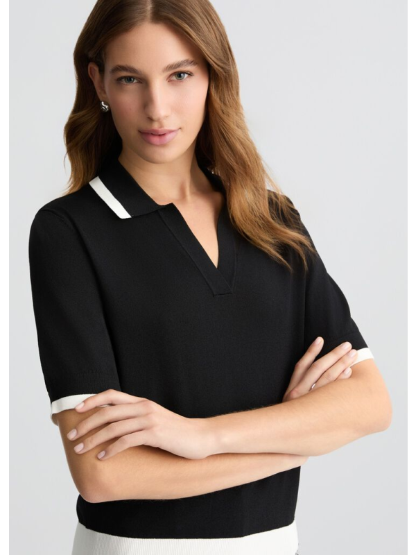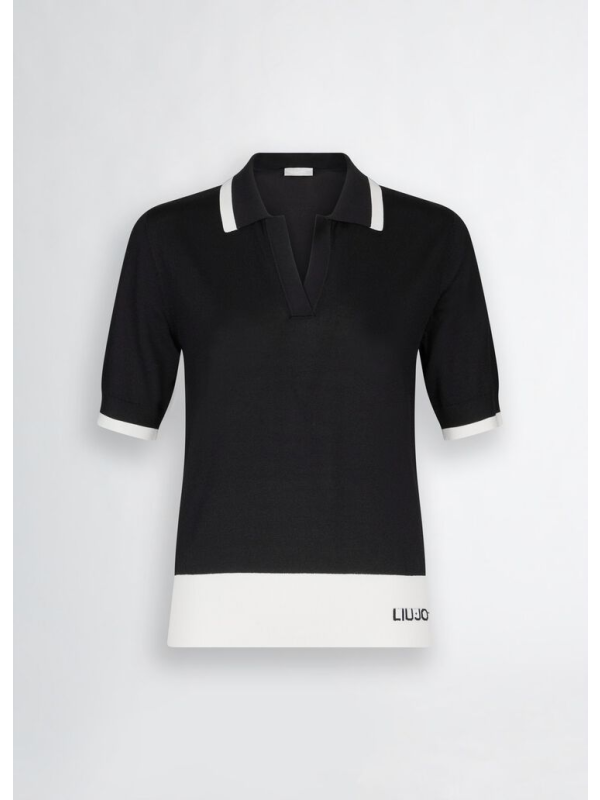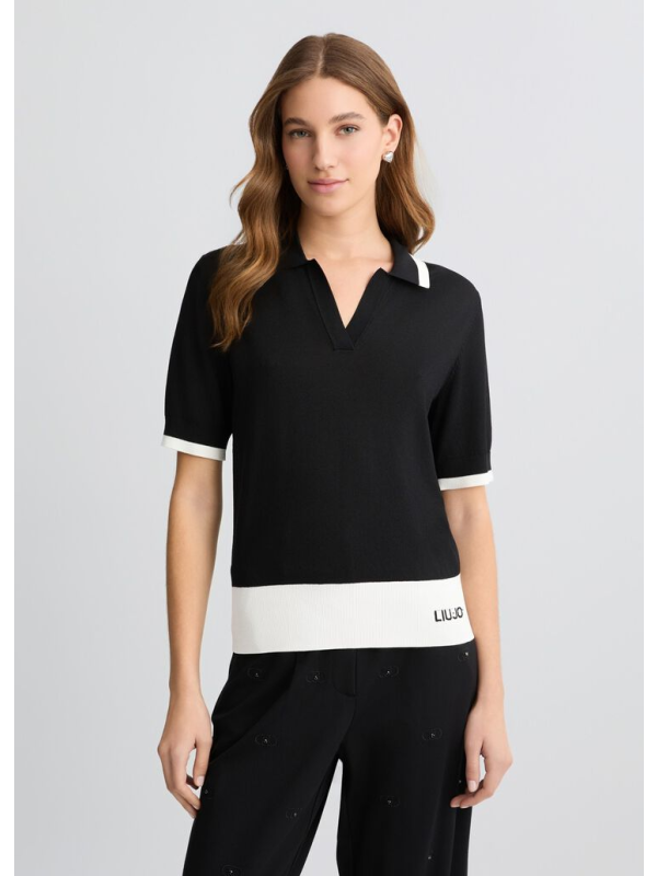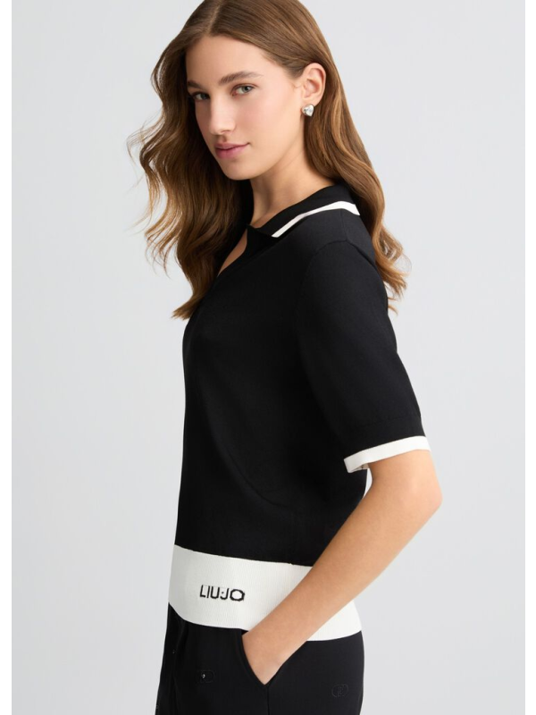 Ženska crna Liu Jo majica kratkih rukava s polo kragnom i bijelim detaljima