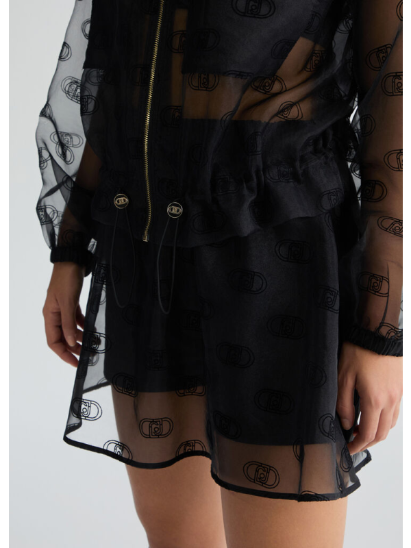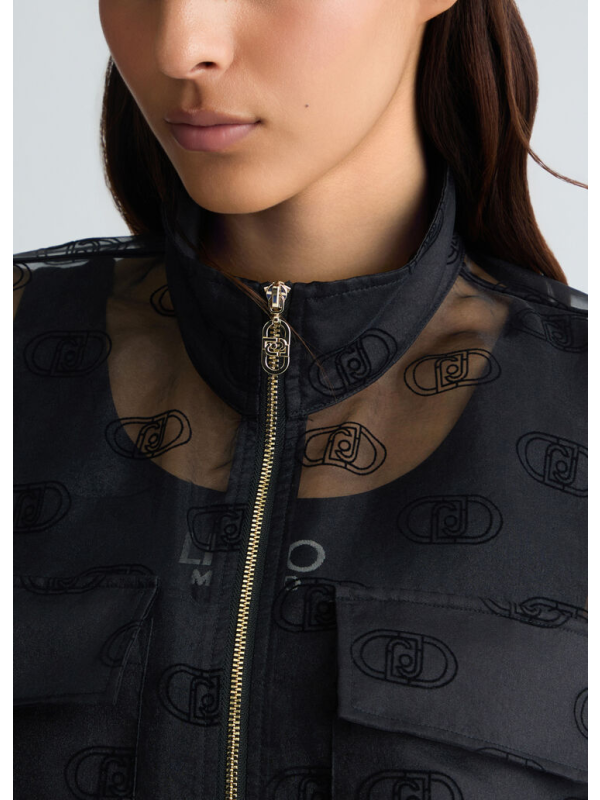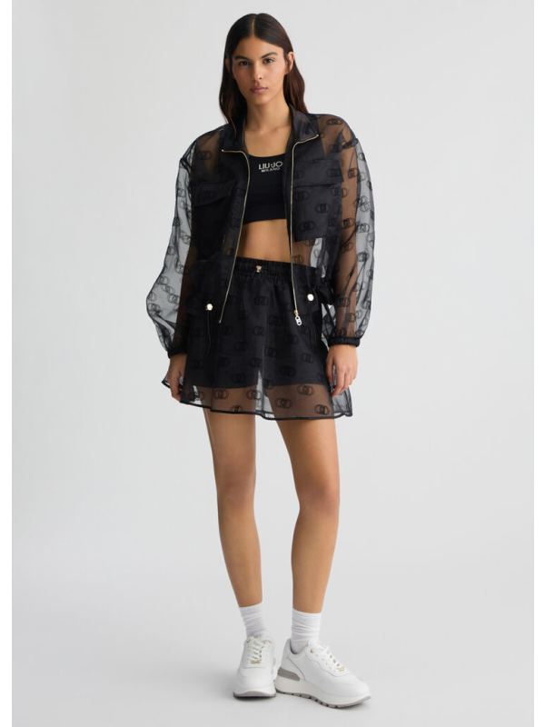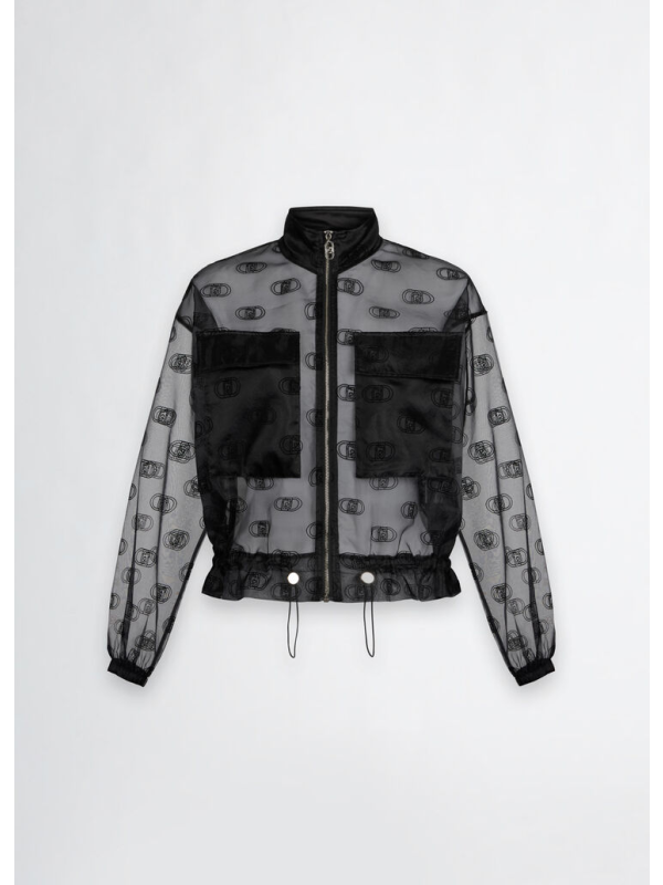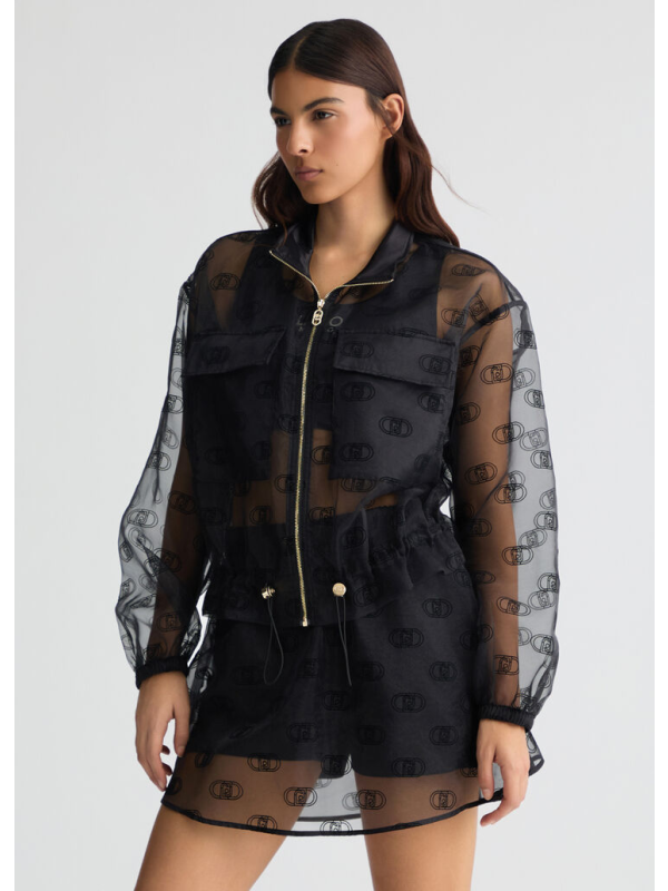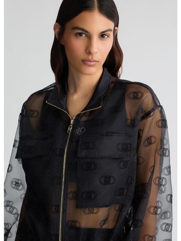 Ženska crna prozirna liu Jo jakna od organze s all-over printom