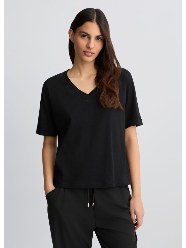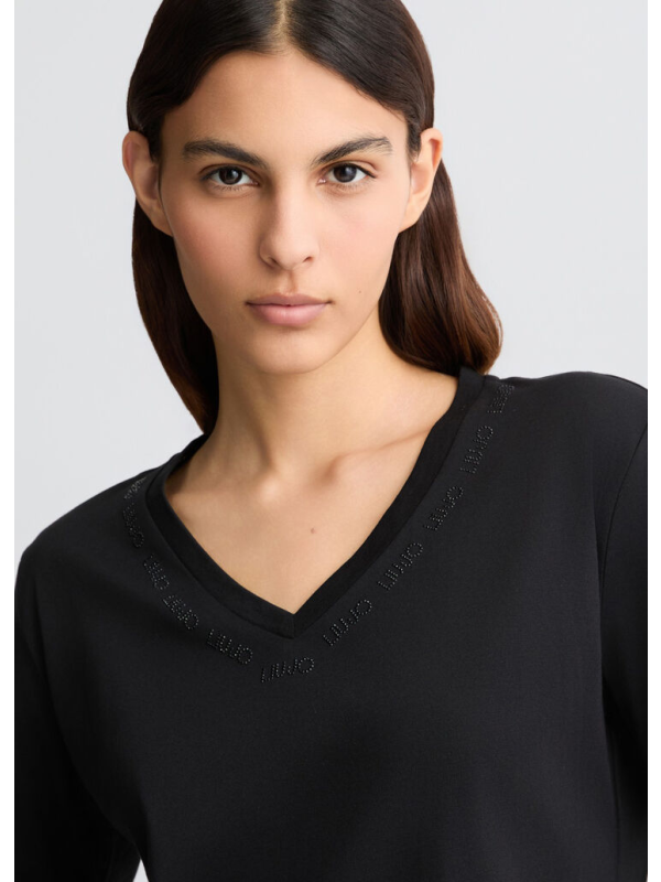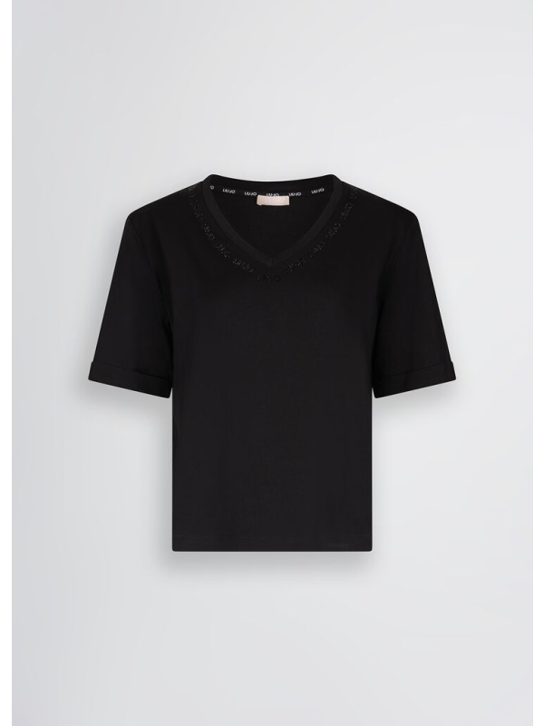 Muška crna Liu Jo majica kratkih rukava s V izrezom
