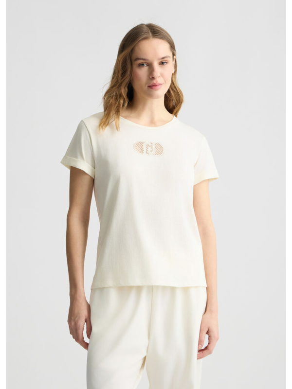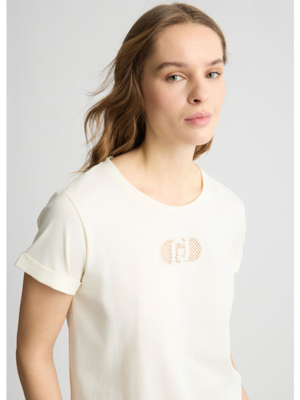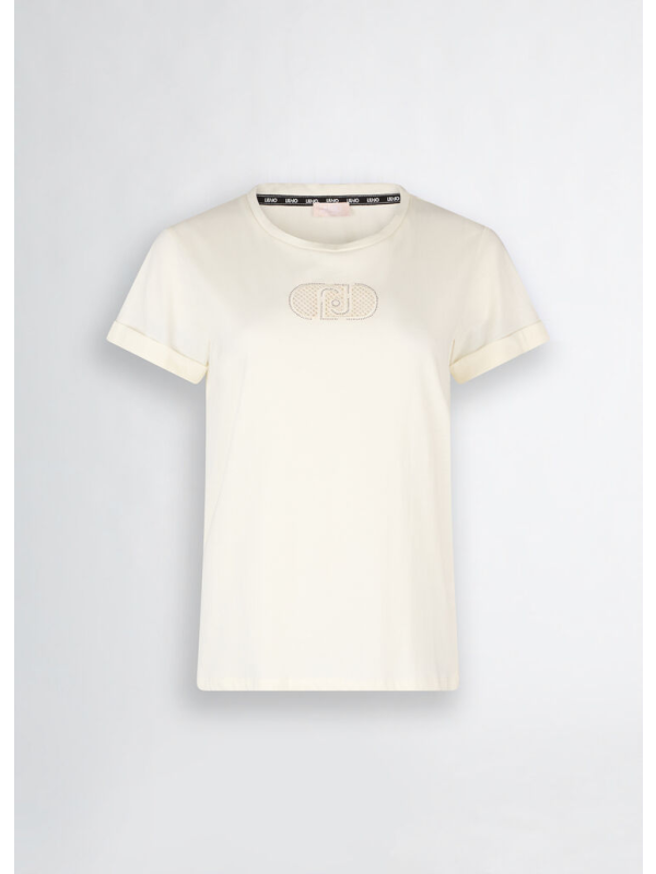 Ženska bijela Liu Jo majica kratkih rukava s logom i ukrasnim kamenčićima