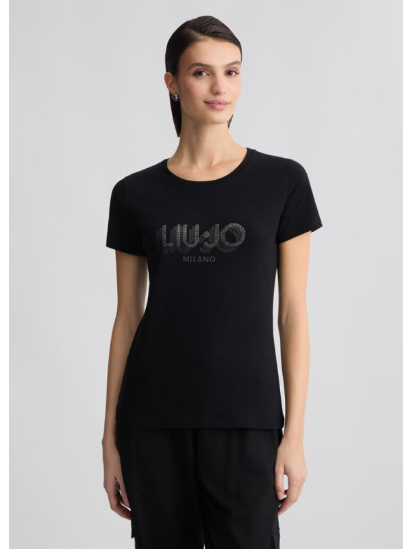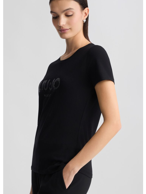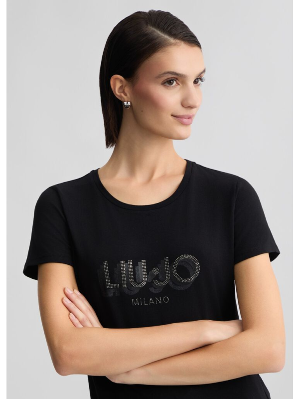 Ženska crna Liu Jo majica kratkih rukava s logom na prsima