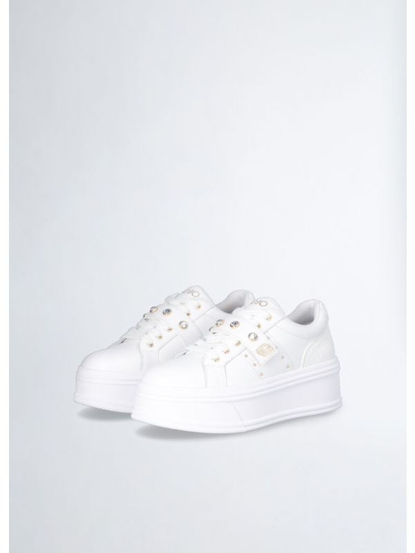 Ženske bijele LIU JO tenisice s platformom s draguljima