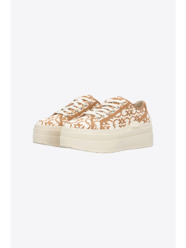 Ženske PINKO kožne tenisice s logotipom, platformom i metalnim ušicama