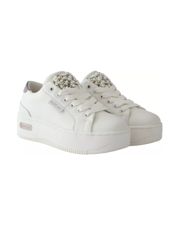 Replay Disco kožne ženske tenisice sa debelim, nazubljenim đonom i perlicama.