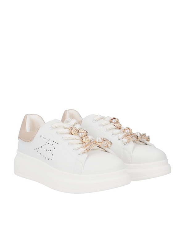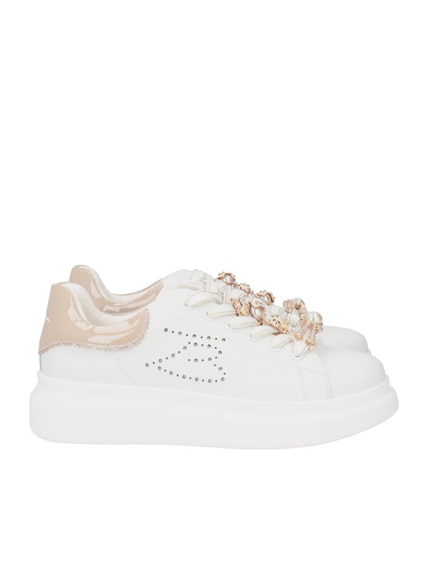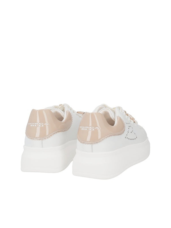 Sigurno ćete se zaljubiti u ovu Tosca Blu tenisicu na vezanje. Izrađena je od mekane kože i leži na kutijastom potplatu i potplatu od 5 cm. Sadrži svjetlucave vezice od lureksa, sjajnu zrcalnu potpeticu i privjeske na jeziku s opcijom uklanjanja. Ove su tenisice izuzetno udobne i nosive zahvaljujući mekanoj unutarnjoj podstavi i podstavljenoj peti. Savršeno će zaokružiti dnevno odijevanje, podižući manje formalne outfite profinjenom ženstvenom privlačnošću.