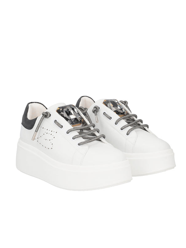 Ženske TOSCA BLU 'Vanity' kožne tenisice s kamenčićima i čipkom od štrasova