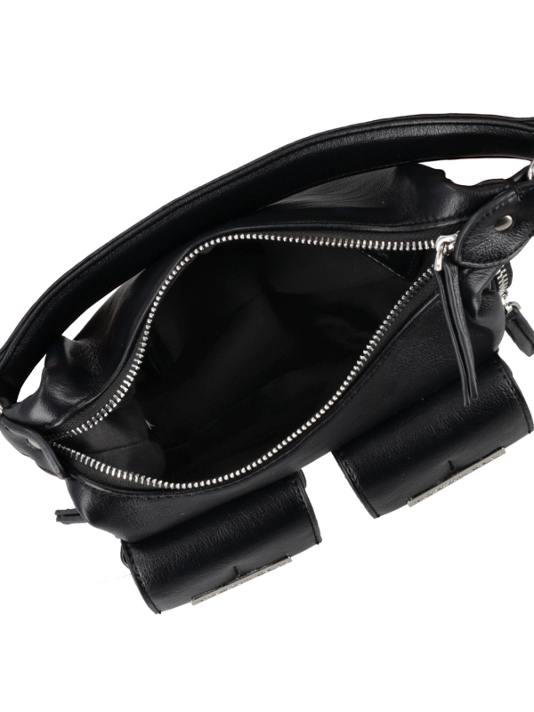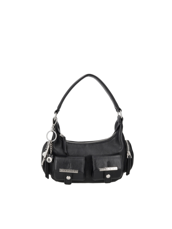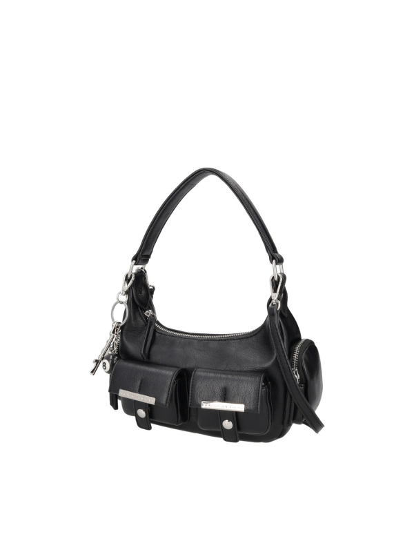 Ova torba za rame s više džepova marke Tosca Blu bit će upravo ono što vam treba za sljedeću kupovinu. Izrađena od recikliranog materijala u crnoj paleti, kopča se čvrstim patentnim zatvaračem i ima četiri našivena džepa (dva s patentnim zatvaračem, a druga dva s drukerima i detaljem s logotipom). Dizajnirana je s glavnim odjeljkom koji uključuje džep s patentnim zatvaračem i otvoreni džep. Uklonjivi i podesivi remen za rame bit će savršen za užurbanije dane. Privjesak za ključeve prepoznatljiv je završni detalj na vašoj torbi za rame s više džepova.