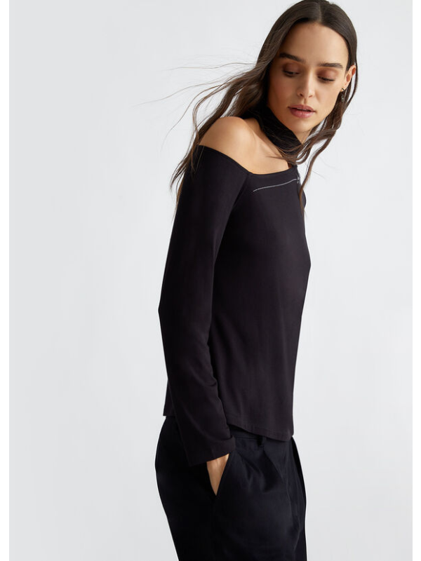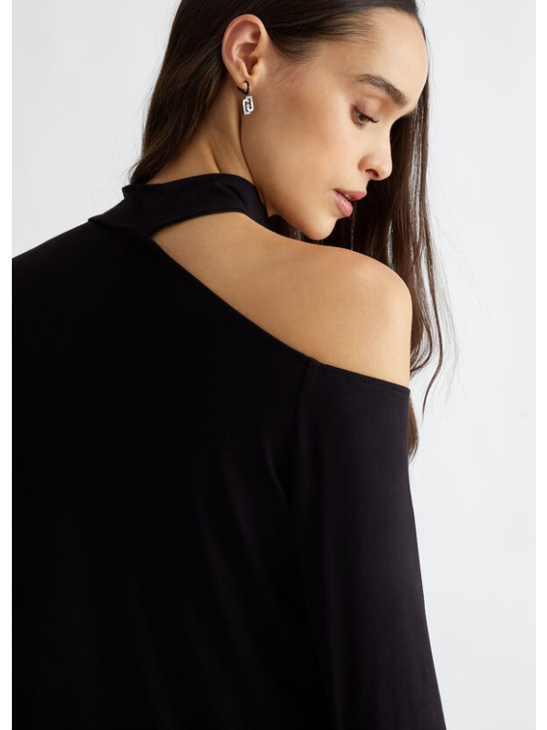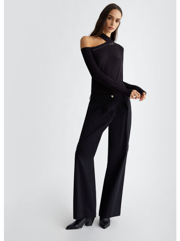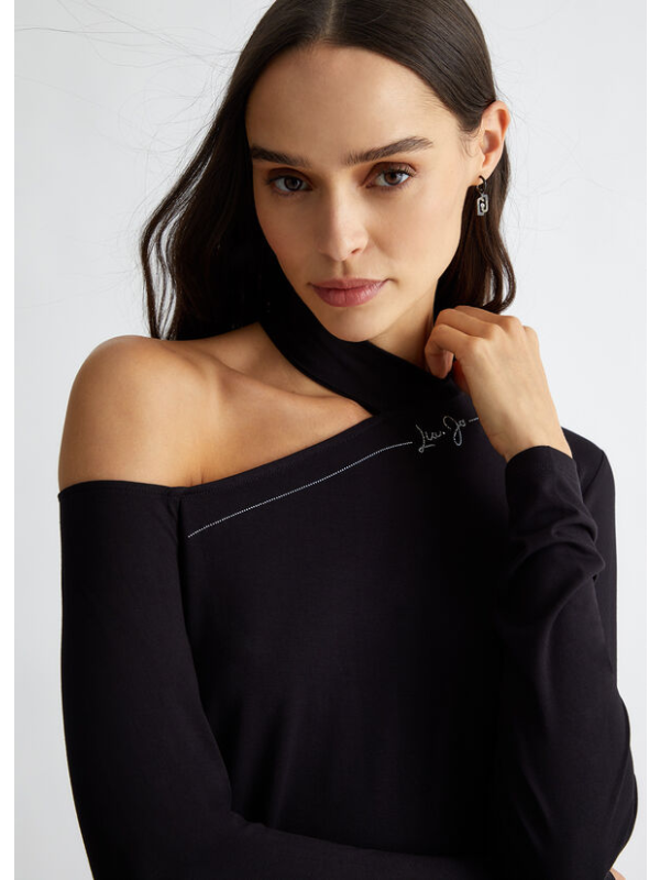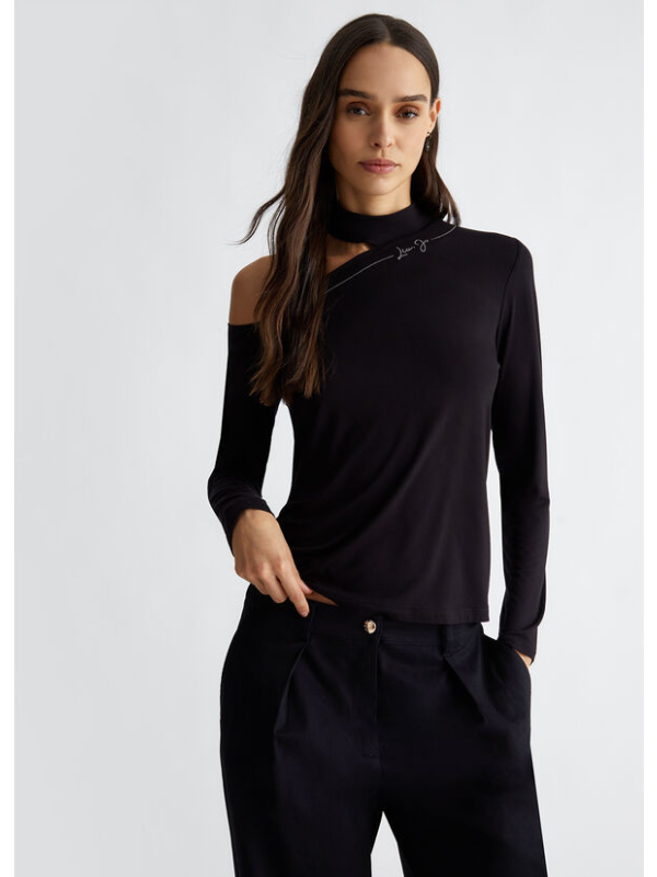 Ženski crni Liu Jo pulover s logom i dragim kamenjem
