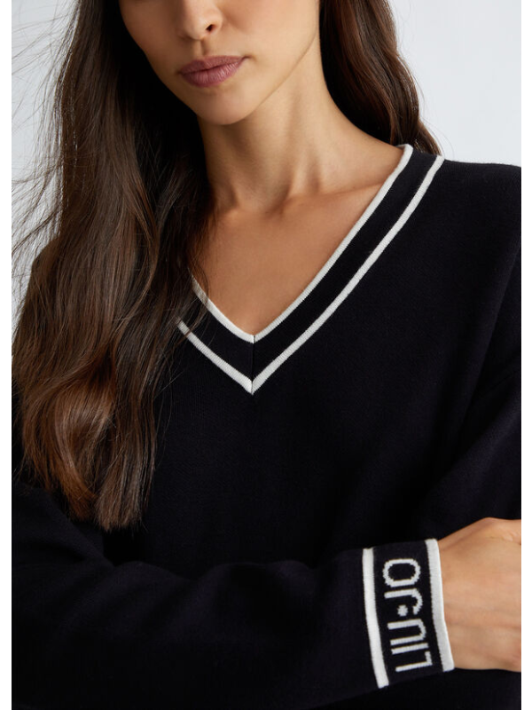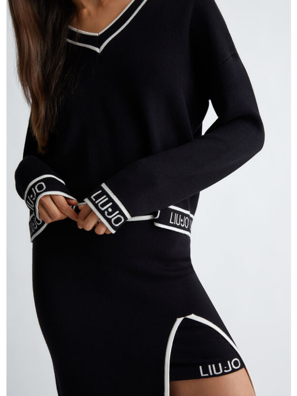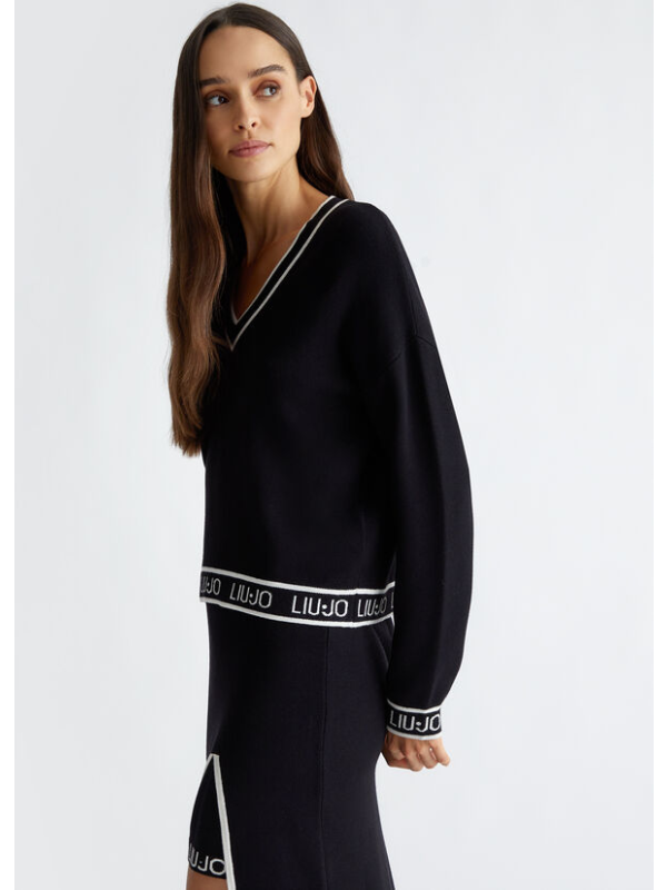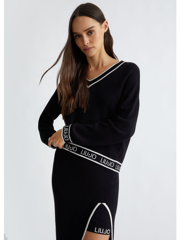 Ženska crna Liu Jo majica od mješavine svile s logotipom