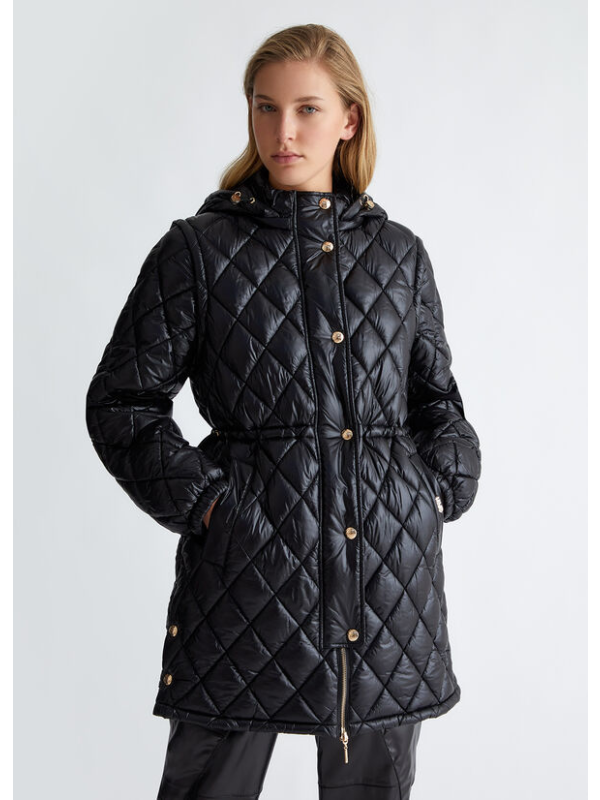 Ženska crna prošivena liu Jo jakna s odvojivim rukavima