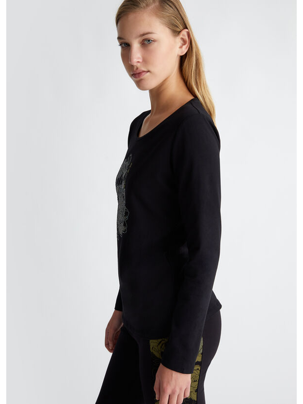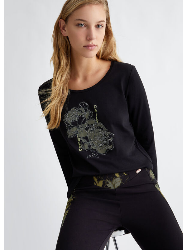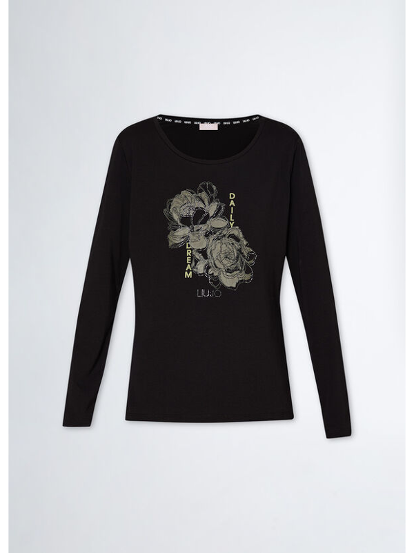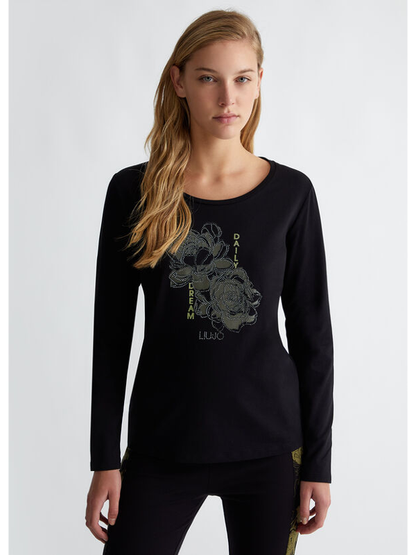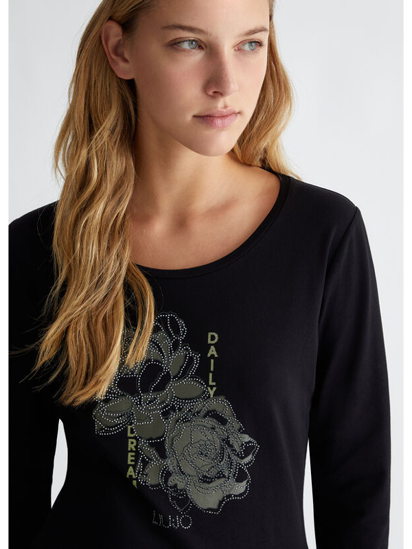 Ženska crna Liu Jo majica s cvjetnom aplikacijom
