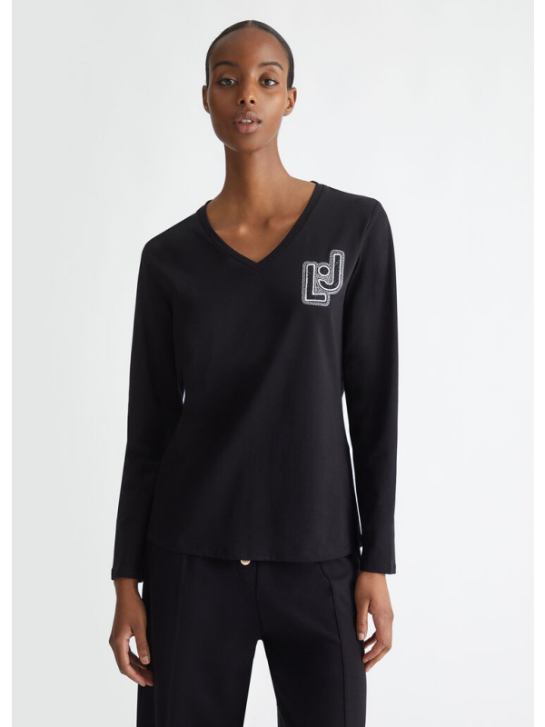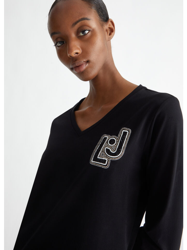 Ženska crna Liu Jo majica sa V-izrezom i logom