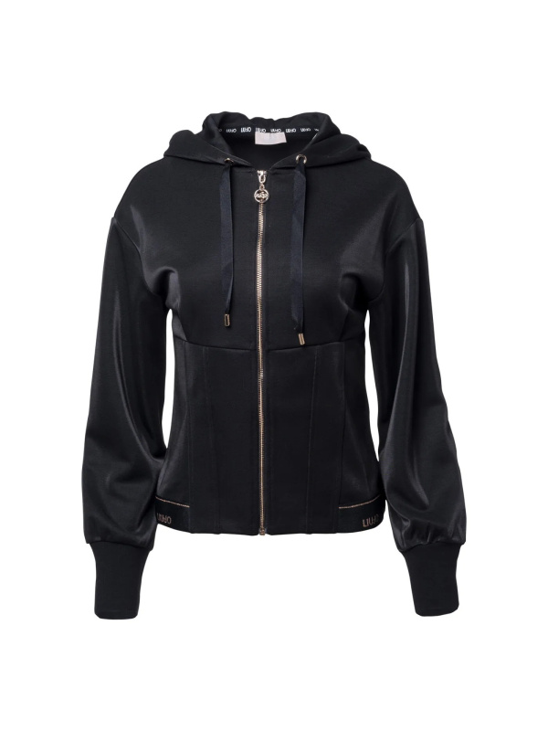 Ženska crna Liu Jo dukserica s kapuljačom i patetnim zatvaračem
