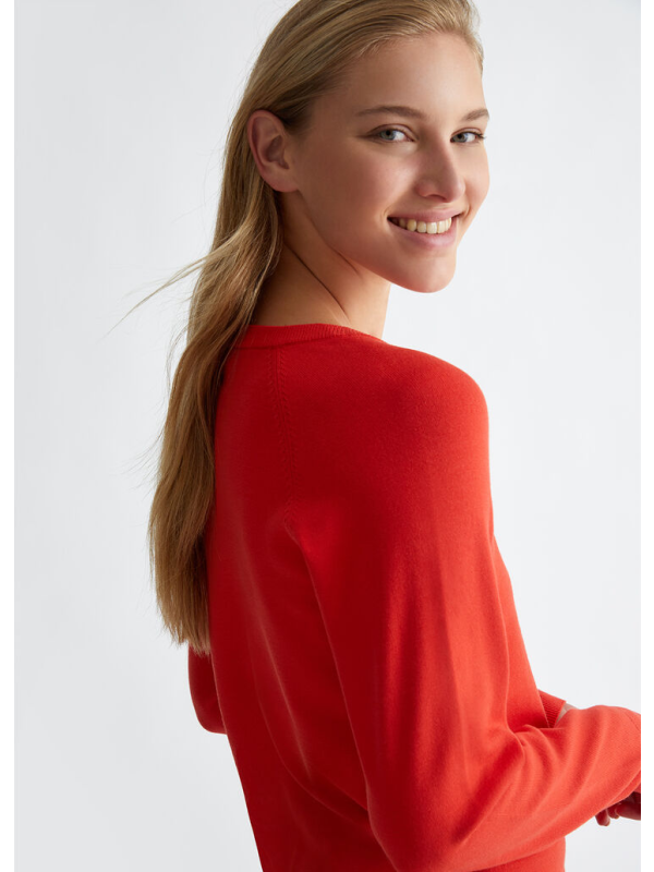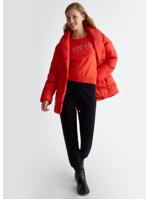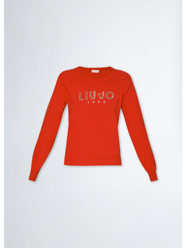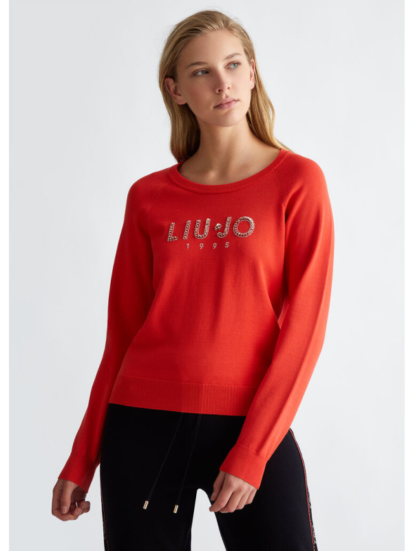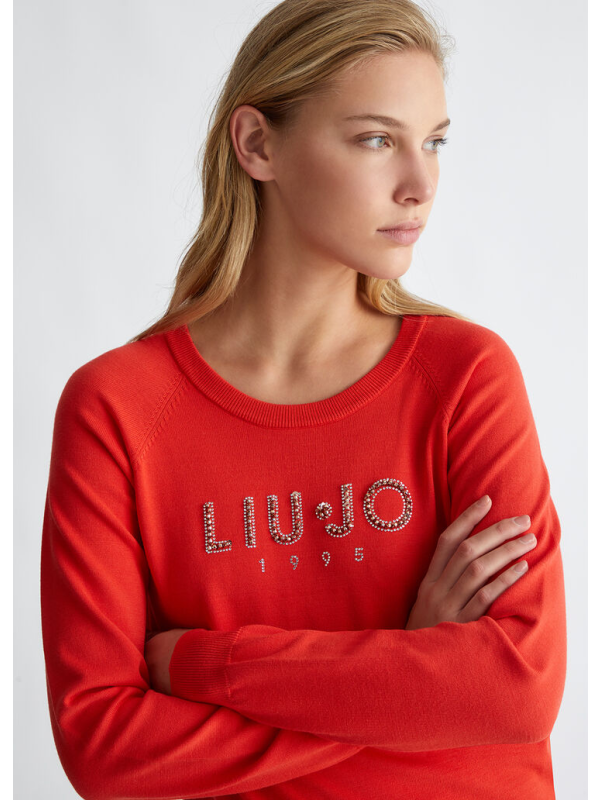 Ženska narančasta Liu Jo majica dugih rukava s logom na prsima od dragog kamenja
