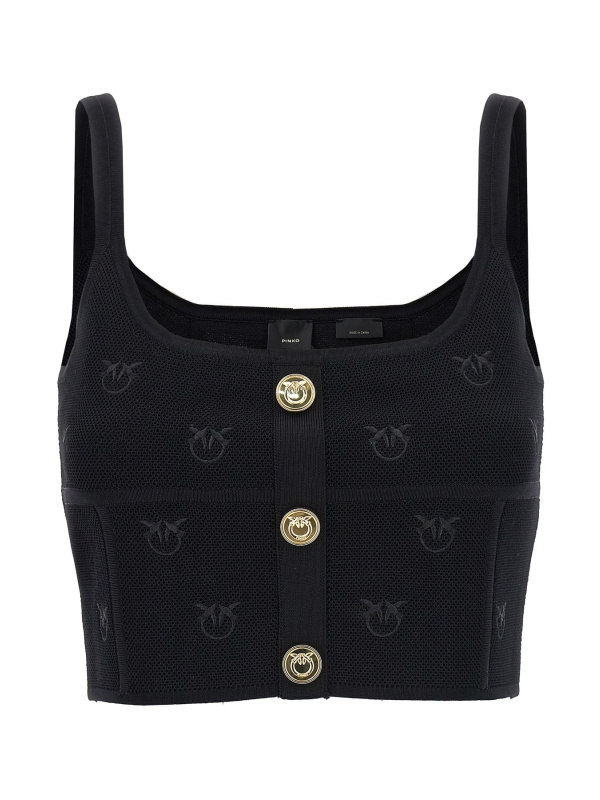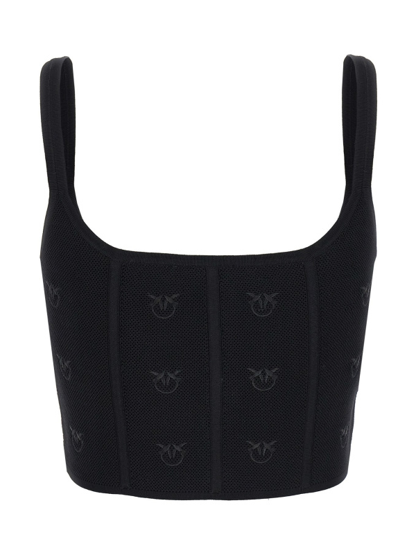 'Dolly' pleteni top od viskoze s jacquard logotipom po cijeloj površini, skraćenog stila i tankih naramenica.