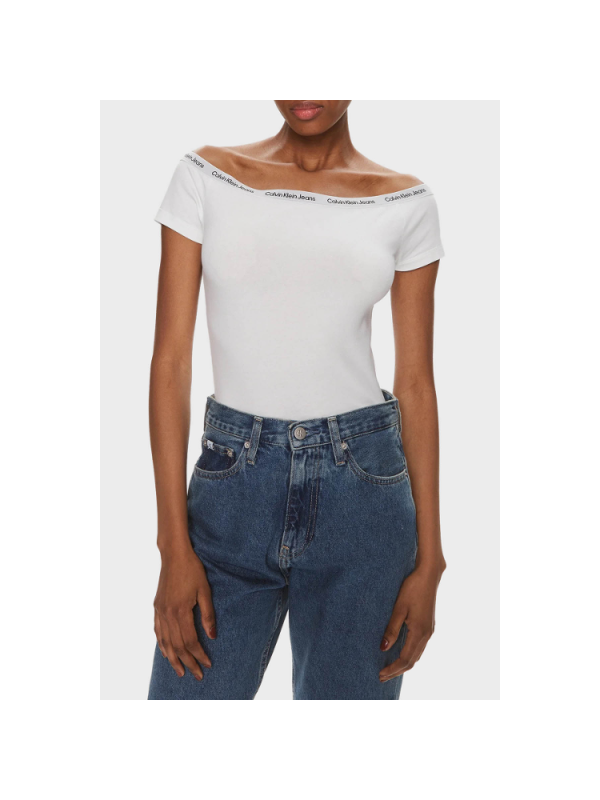 Ženski Calvin Klein rastezljivi pamučni top s vezom loga oko izreza