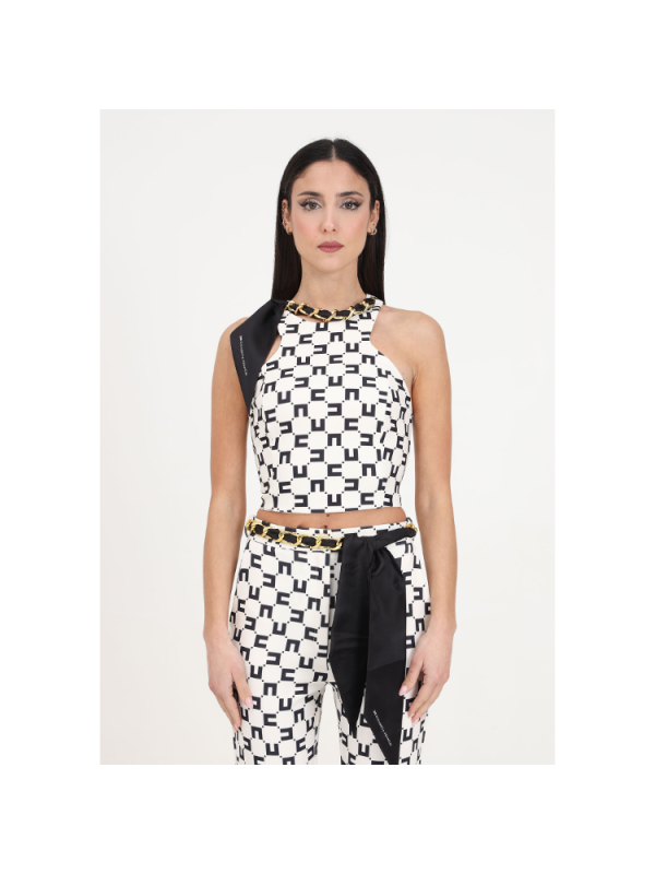 Ženski ELISABETTA FRANCHI krep top s printom preko cijelog logotipa sa šalom.