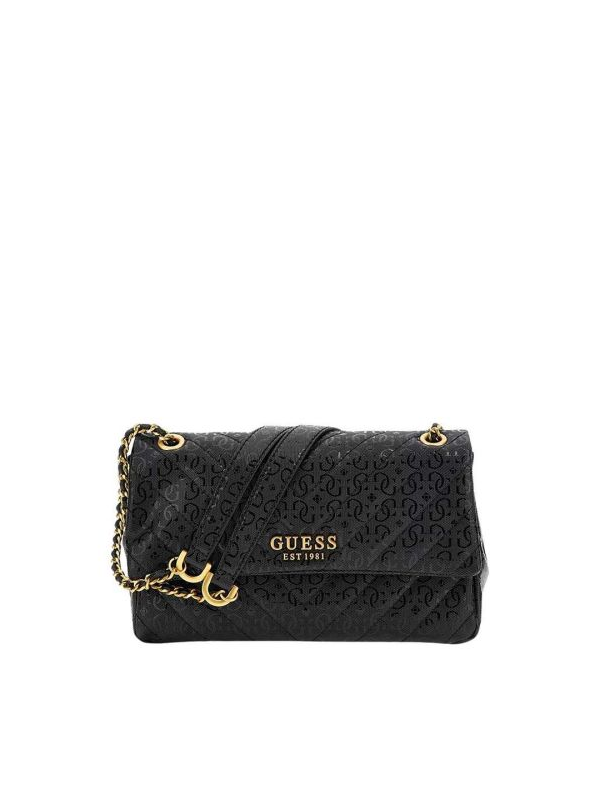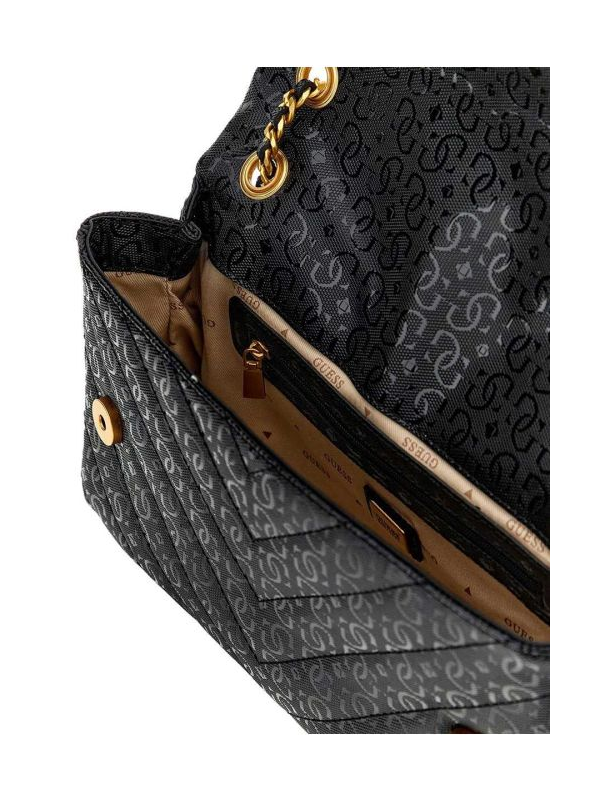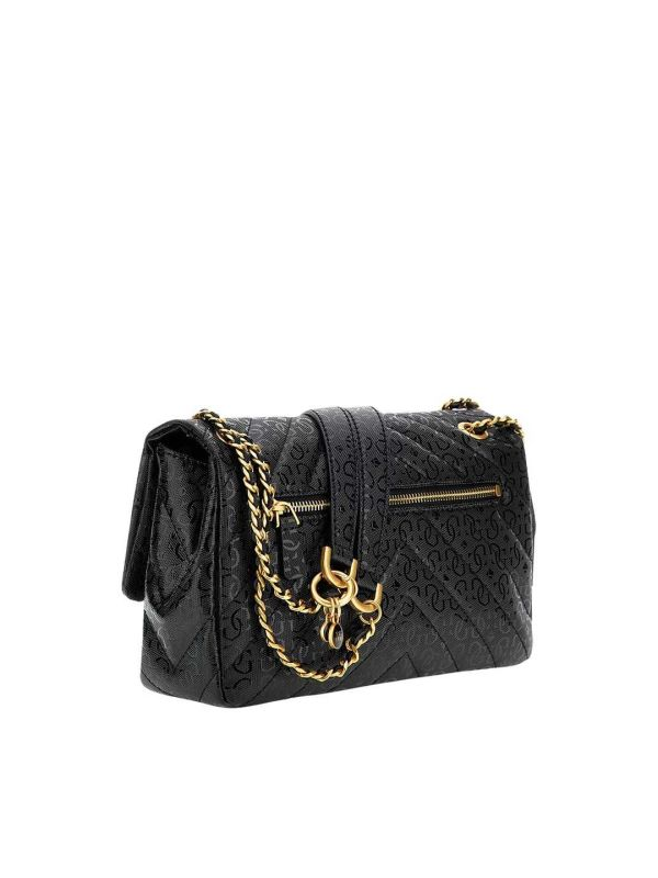 Guess Jania prošivena crna torbica sa sjajnim logo printom