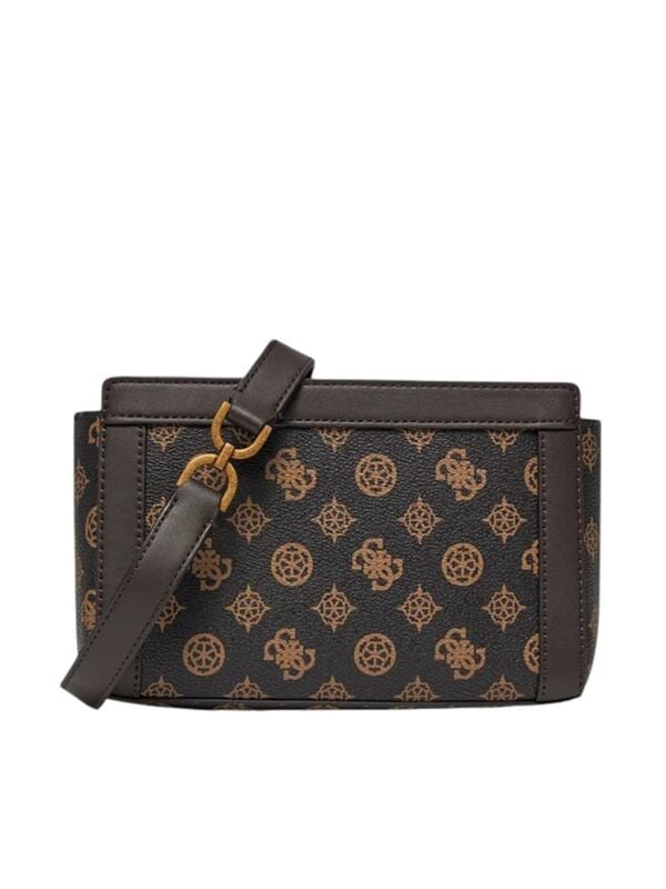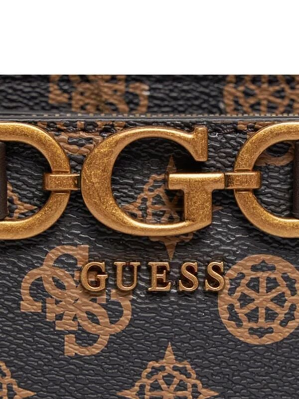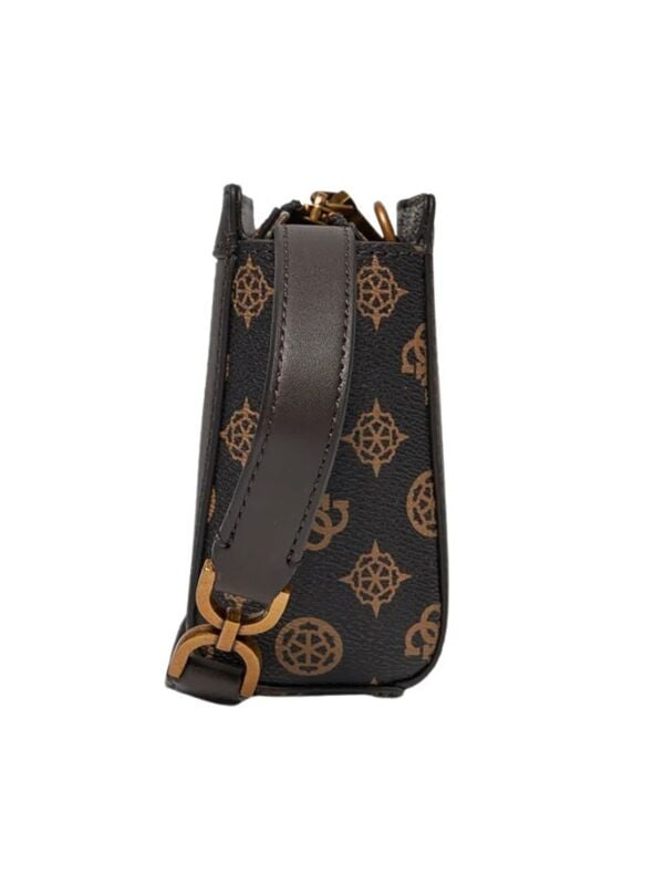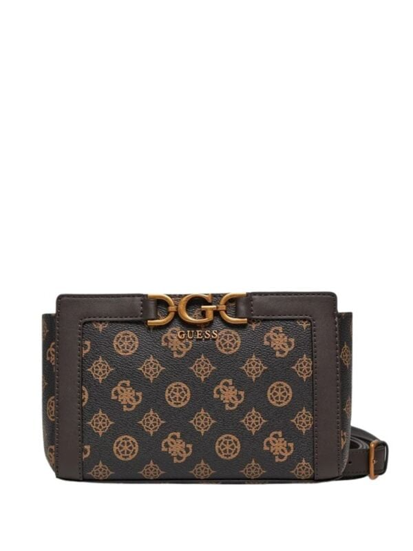 Guess Dagan Mini tamnosmeđa torbica sa logo printom u svijetlijoj smeđoj nijansi
