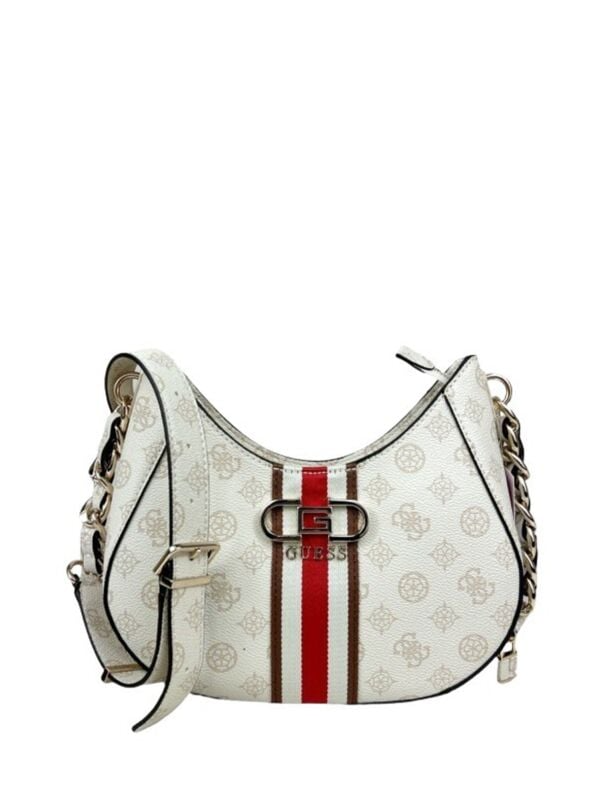 Guess Nelka Top krem ženska torbica sa logo printom i prugama