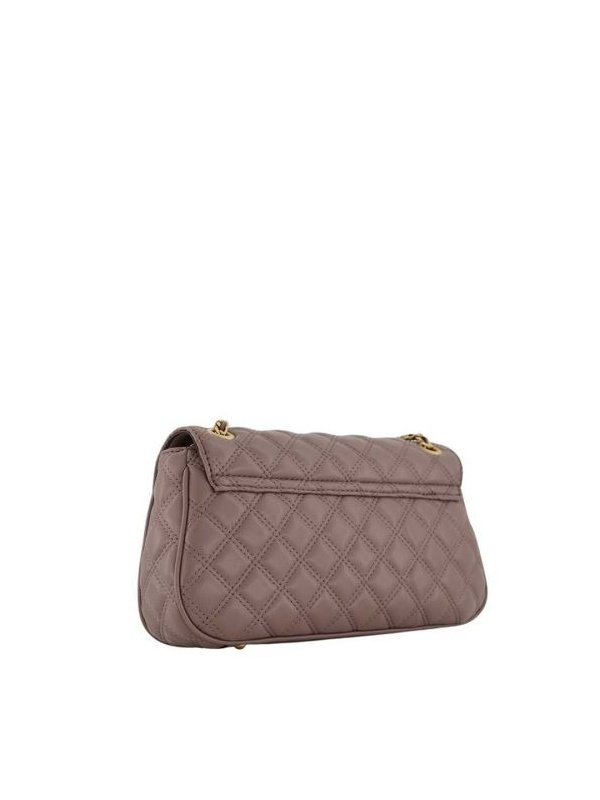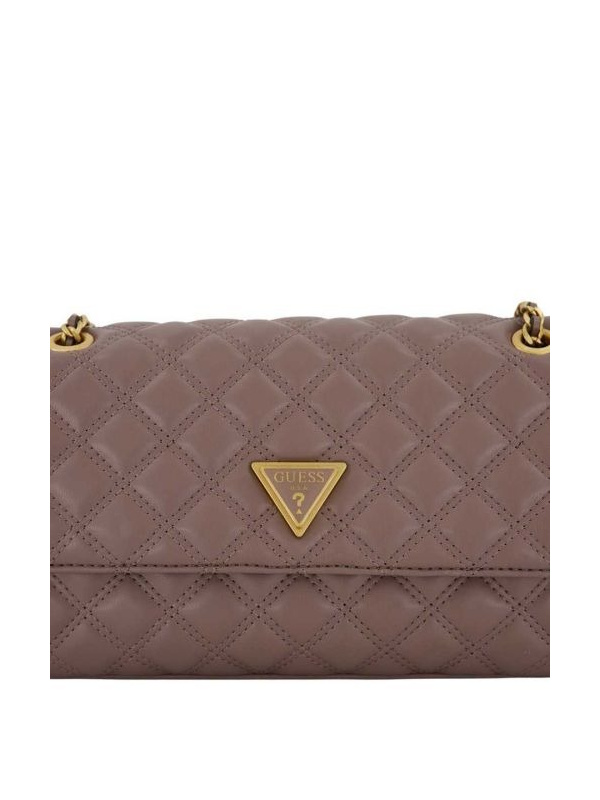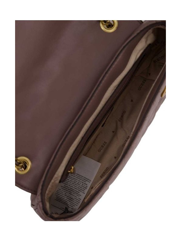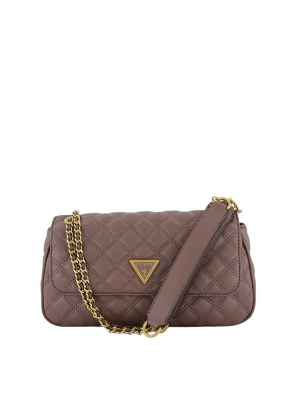 • Ženska smeđa prošivena torbica Guess 'Giully'  sa zlatnim lancima na kaišu
