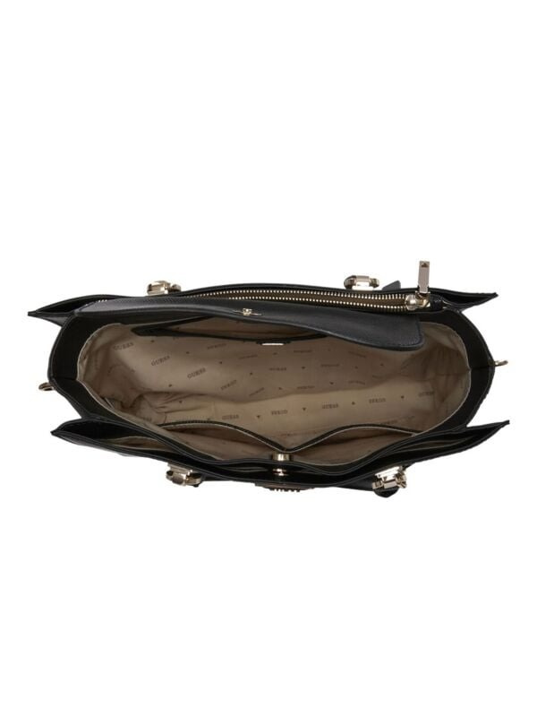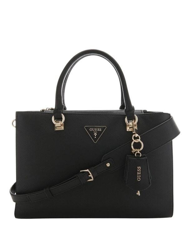 • Guess Brynlee High Society Carryall crna ženska torba sa logo privjeskom