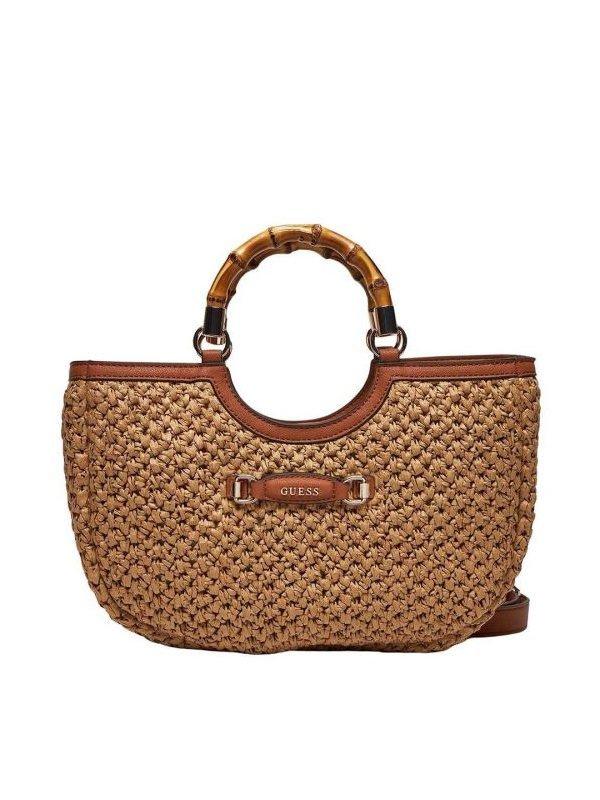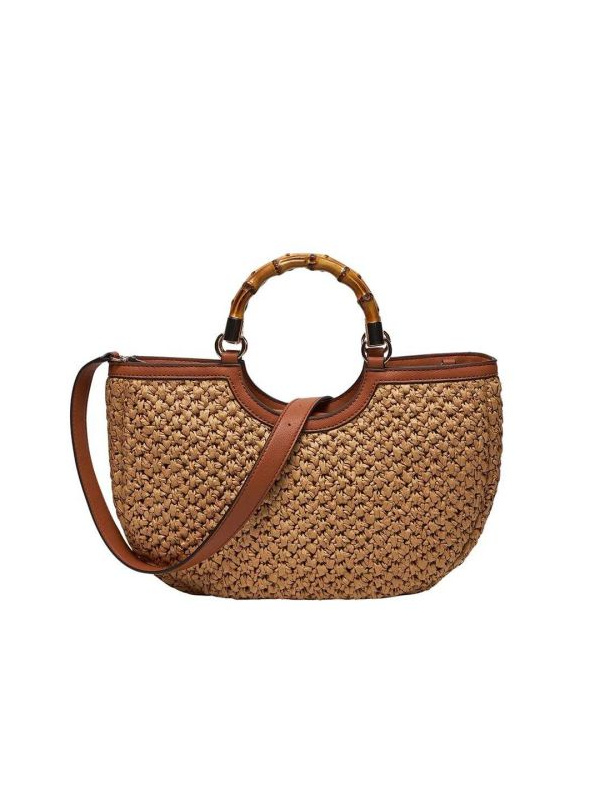 Ljetna ženska Guess smeđa torba od isprepletane papirne slame.