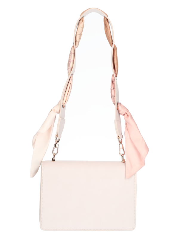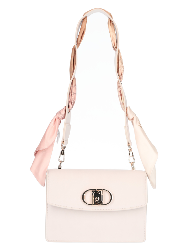 Liu Jo ženska torba za rame od bež eko-kože sa zlatnim završecima, ručkom ukrašenom šalom koji se može skinuti i lančićem za rame.
