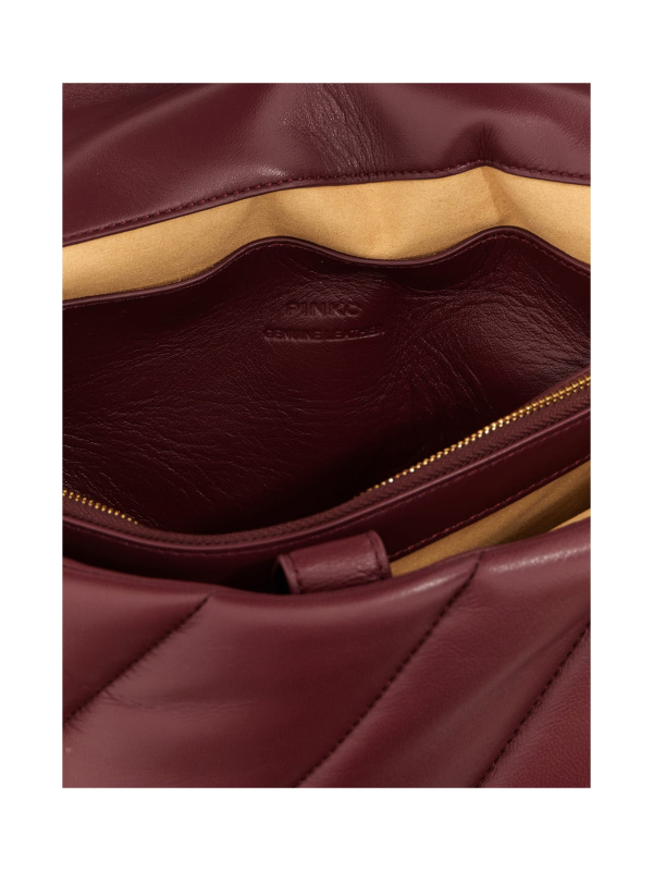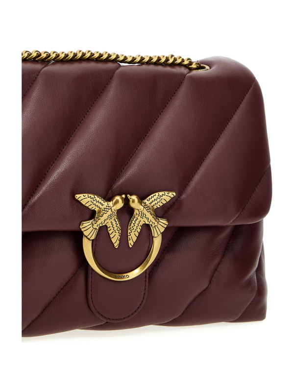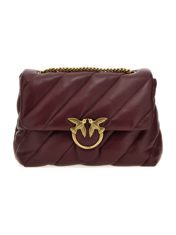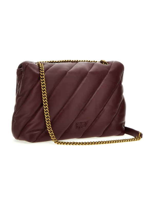 Ženska PINKO tamnocrvena Love Big Puff' prošivena kožna torba preko ramena s poklopcem za kopčanje s prednjom kožom s metalnim logotipom i lančićem za nošenje preko ramena.