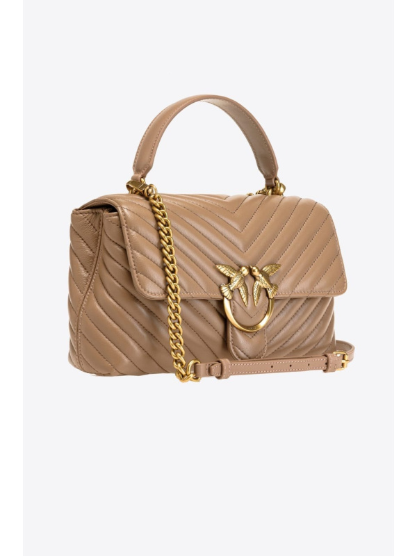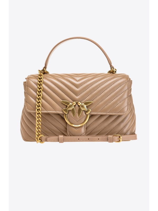 Klasična Lady Love Bag Puff od prošivene napa kože s uzorkom ševrona u 'ginger biscuit' PINKO boji.