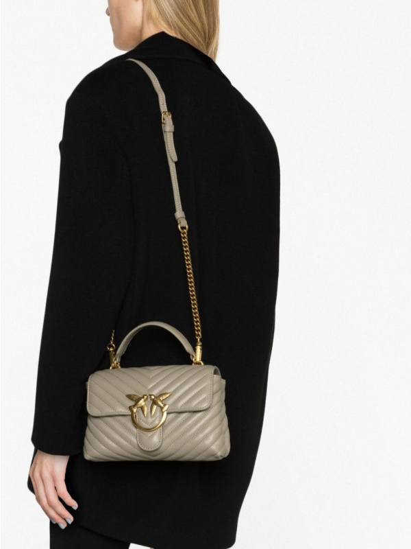Mini Love Bag Puff od prošivene napa kože sa ševron uzorkom u 'walnut' boji