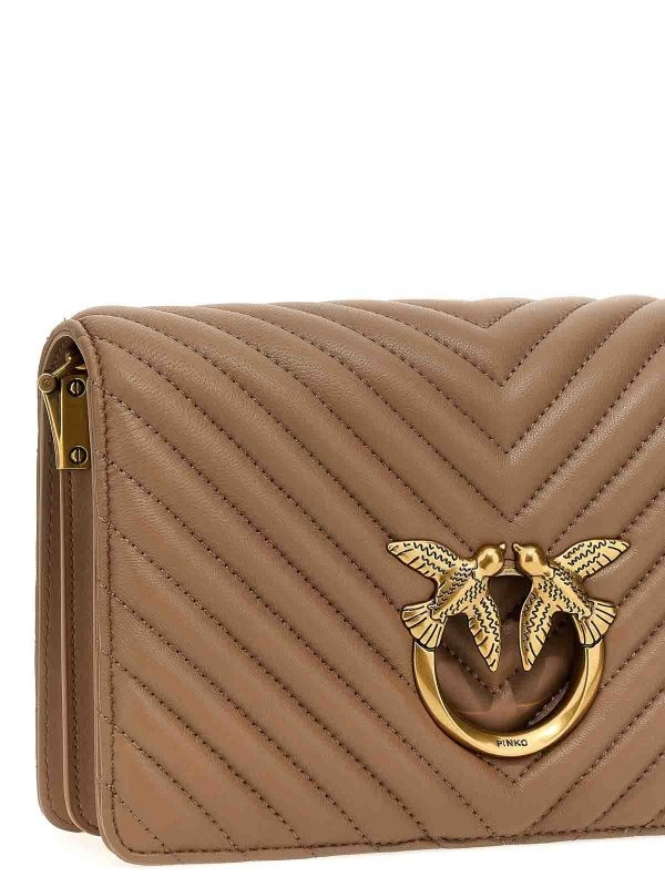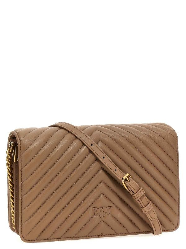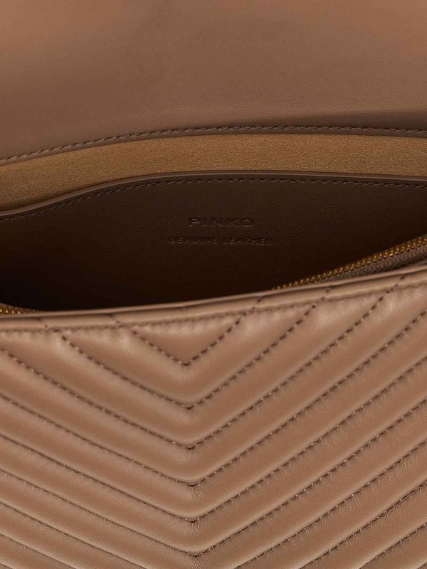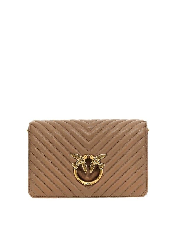 Klasična PINKO smeđa torba za preko ramena s preklopom, lančićem,logotipom i podesivim remenom