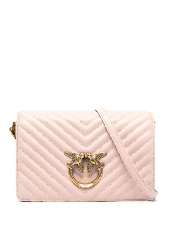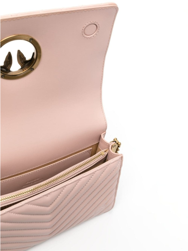 Ženska svijetloroza Pinko Love torba od prošivene nappa kože s dizajnom ševrona