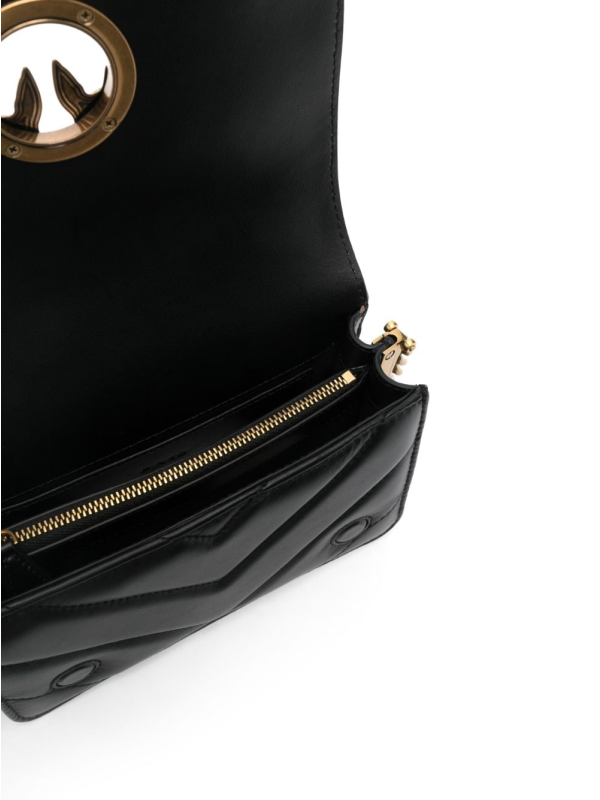 PINKO's Love Birds torba dobila je ime po prepoznatljivoj metalnoj aplikaciji zlatne boje na prednjoj strani.